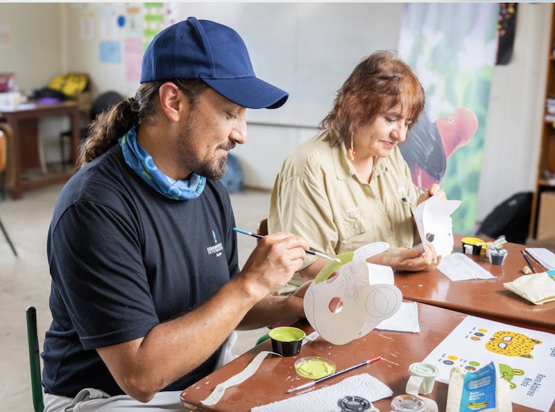 El taller tuvo un enfoque lúdico, a través de la pintura, la escultura y la literatura, los niños aprendieron conceptos científicos de manera creativa. Armaron un rompecabezas que les permitió visualizar el corredor de conectividad Palora–Pastaza y entender qué significa una reserva vital. También construyeron figuras tridimensionales de animales, aprendiendo datos biológicos y aspectos culturales de cada especie. A través de la narración de una historia, reflexionaron sobre el rol que cumplen estos animales en la conservación y en la conexión entre fragmentos de bosque y finalmente pintaron máscaras de las especies focales del corredor.